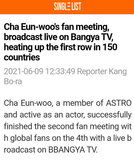 #17 Cha EunwooThe Korean version of American economic magazine, Forbes, published its list for 2021 Power Ranking Celebrity. The list includes athletes, entertainers, actors, actresses, singers and other talents.1. BTS